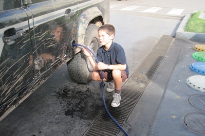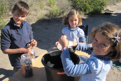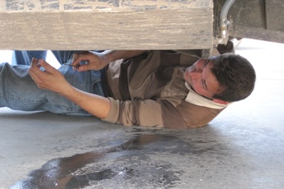 We also fill our water tanks for the first time, and Matthieu has to fix some leaks...