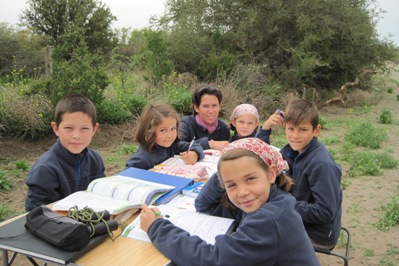 Meanwhile, Charlotte continues the school with the children. Suddenly, Tugdual jumps away from his seat and shout. Dad!!! there is a huge spider on my school bag.