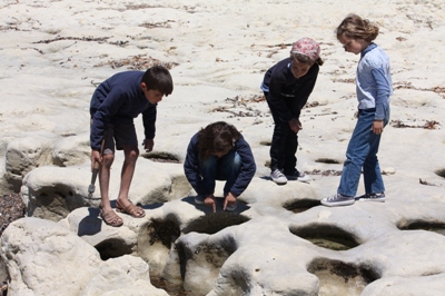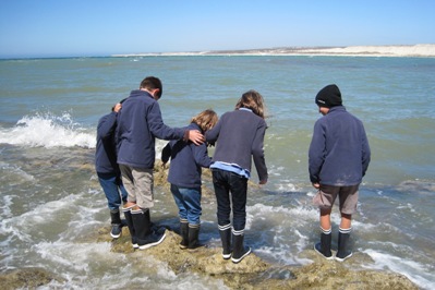 The children put their boots on for the first time, and play for hours with the tide..