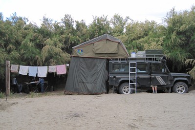 The small campsite of Puerto Piramides is lovely. The tamarisk protect us from sun and wind.
