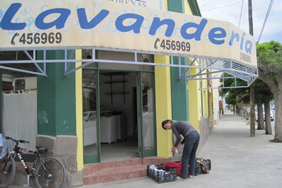 While Charlotte takes care of the laundry, Matthieu is questionned by a group of Argentinians who ask lots of questions about our trip.