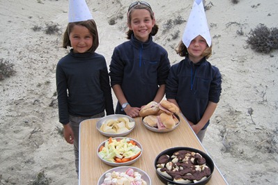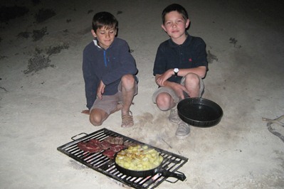 Cold meal for the girls including three desserts, and a barbecue for the boys with 3kg of fries!
