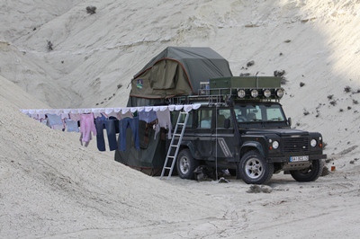 Drying clothes at the camp.