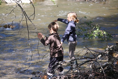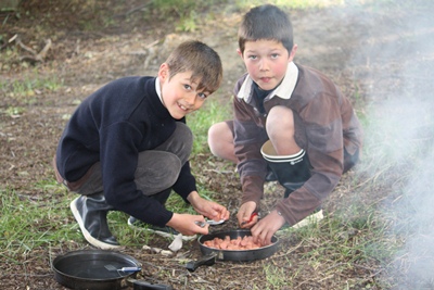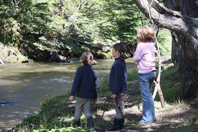 The children, inspired by what they saw, build together a beautiful Yamana hut in which they invite us to dinner.