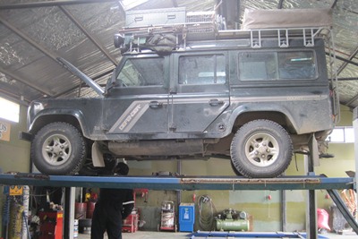 Due to the high weight of the Land Rover the lift breaks down.