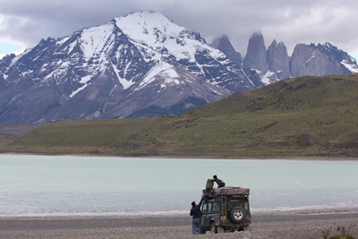 We camp at the entrance of the park with a stunning view over the famous "Torres." But the night will be short as a windstorm forces us to move the vehicle several times.