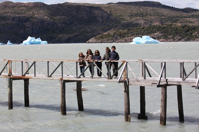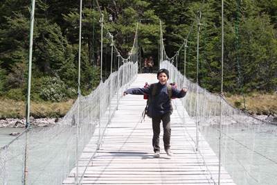 To reach the Grey Glacier, we pass by a suspended bridge in a windy area, and Charlotte is rather scared.