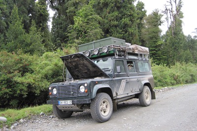 The ruts of the Chilean tracks are damaging the car, but Matthew is not afraid to dismantle and repair.