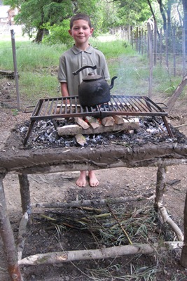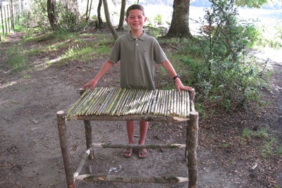 Tugdual, who is reading his "Scoutorama" for the third time, has the idea to make a fire table.