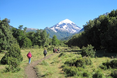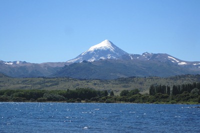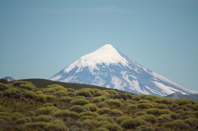 Lanin volcano rises to 3776 meters in the middle of a beautiful landscape.