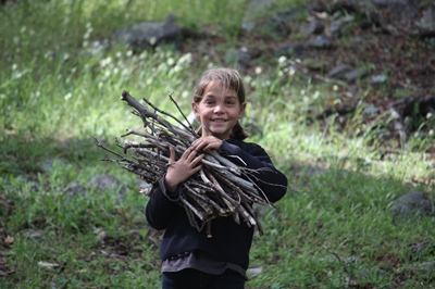 In order to motivate the girls, who are a bit tired, the boys go forward and organize a successful treasure hunt.