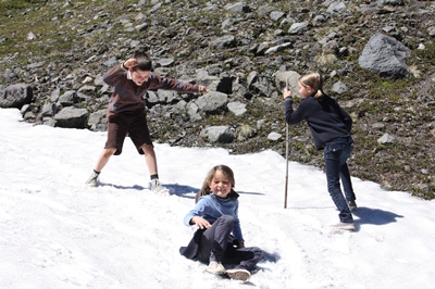The children are delighted to make slides in snowfields, even if they get wet very quickly.