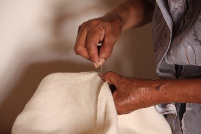 The wool is dyed on site using various natural pigments.