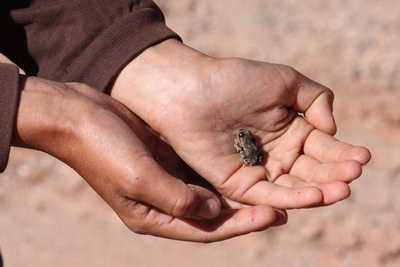Enguerrand is very glad to have found a baby frog.