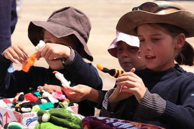 Children increase their collection of finger puppets: a whale, a sea lion, a llama, a condor ...