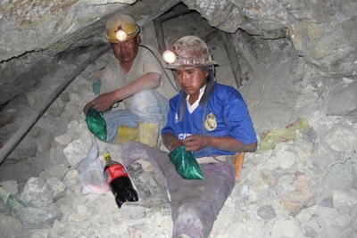 Working conditions are terrible, and the miners chew coca leaves all day long.