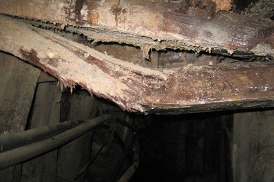 We go through half collapsed galleries.