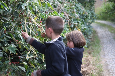 Children pick up some and plan preparing a home made coffee for Matthieu !