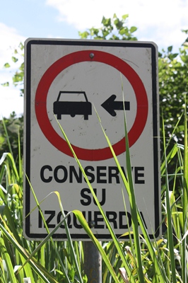 In order for the driver standing next to the precipice to see his wheels, we drive on the right side of the road.