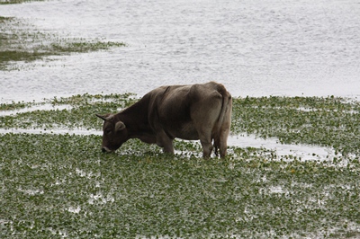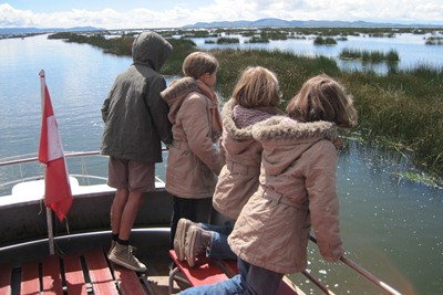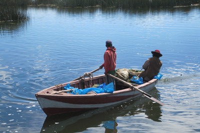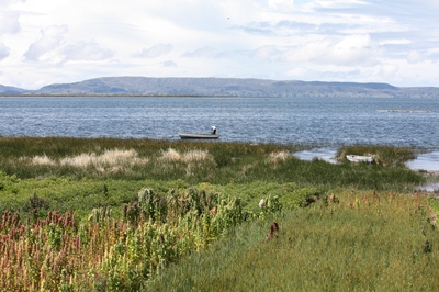 At this location it is much shallower and partly covered by Totora, a kind of reed.