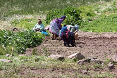 We go around the Lake Titicaca and we notice that the small fields are better maintained than in Bolivia.