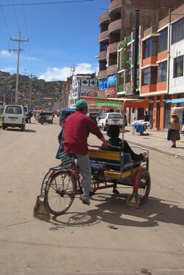 Arriving in Puno, there are many rickshaws as we could see in Egypt, but there are also pedal cars.