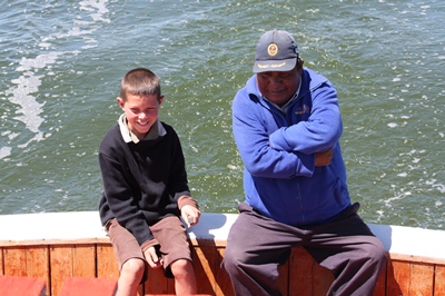 On our way back, Tugdual asks in Spanish to the Captain if he can take the helm ...