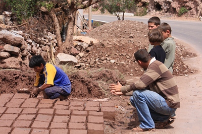 Along the road, we stop to watch a man making adobe bricks.