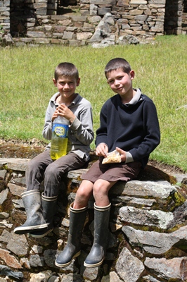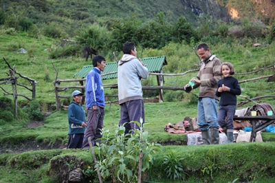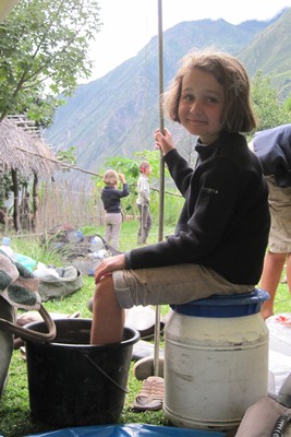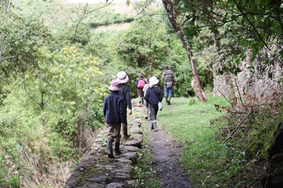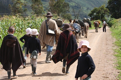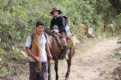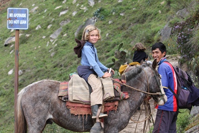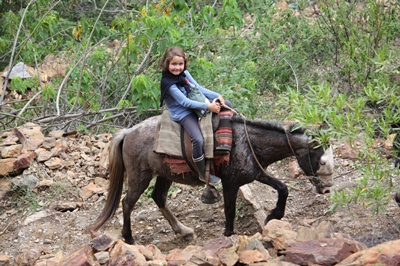 As we have decided to walk back the 30 km in one day, children get on the horses for the big climb.