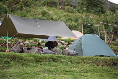 At the eighteenth kilometer, we are exhausted but happy to finally arrive at our camp.