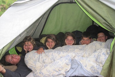 Shortly after our arrival at the second camp site, the rain stops and we try to dry our things.