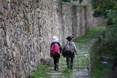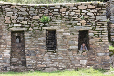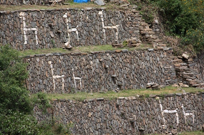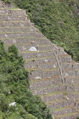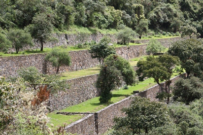 To see the famous "llamas terraces" we must go 300 meters down on the other side of the mountain.
