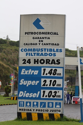The price of petrol being very interesting in Ecuador (U.S. $ 1 per gallon ...), we passed the border with empty tanks.
