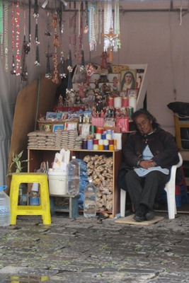 The merchant on the square takes advantage of the low activity to have a nap!