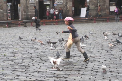 When Octavie sees a pigeon, she has to run after it.