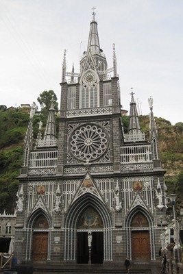 We admire the Shrine of Our Lady of Las Lajas, nestled deep in the valley.