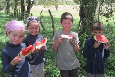While we enjoy a good watermelon, a car stops.