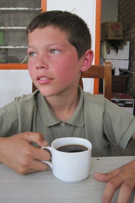 He offers us an excellent Colombian Nescafé and he is surprised that children are not used to drink cafe!
