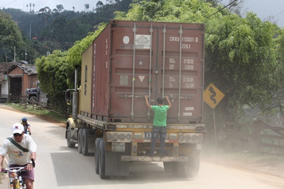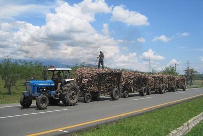 On the road, we see huge convoys of sugar cane.