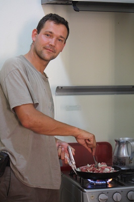 When seeking for dollars to pay for our transfer, we meet Gwenn by chance.