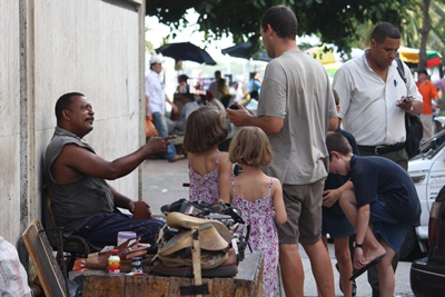 We are at the edge of the Caribbean Sea, and the population is really colorful.