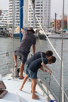 We board the Chao-Chao, a yacht of 13 meters, where we are greeted by Tadeusz and Muriel.