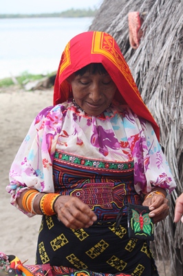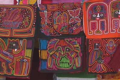 Women make and sell molas, those tissues richly worked by hand, which are used to adorn the front of their dresses.