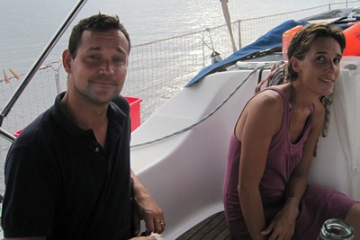 We meet Paul and Gwen, who invite us on their boat for a drink.