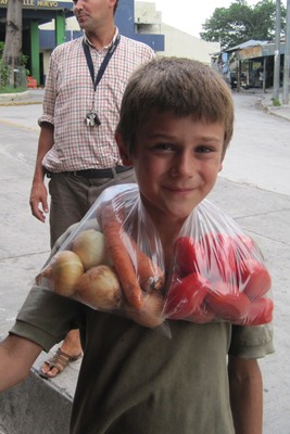 We run on the first shop of chips near the border post, and also buy some vegetables.