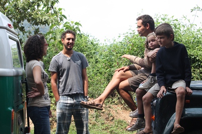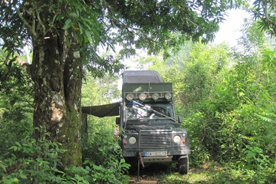 For our first bivouac in Guatemala, we go deep into a forest and we set up under a big mango tree.