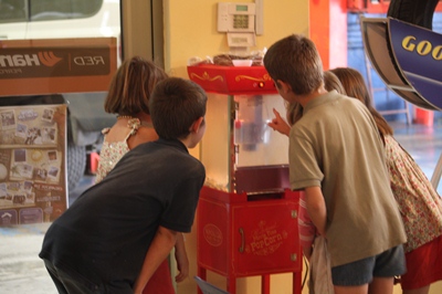 The boss of the garage, who wants to treat for children, inaugurates his popcorn machine.