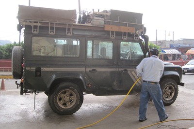 Upon entering Mexico, the car is fumigated with a garden hose!