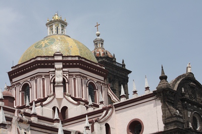 It is seated on the roof of this old bus that we go to visit the beautiful city of Puebla.