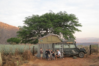 In the evening, we spend the night in a beautiful place, in the middle of agave fields.